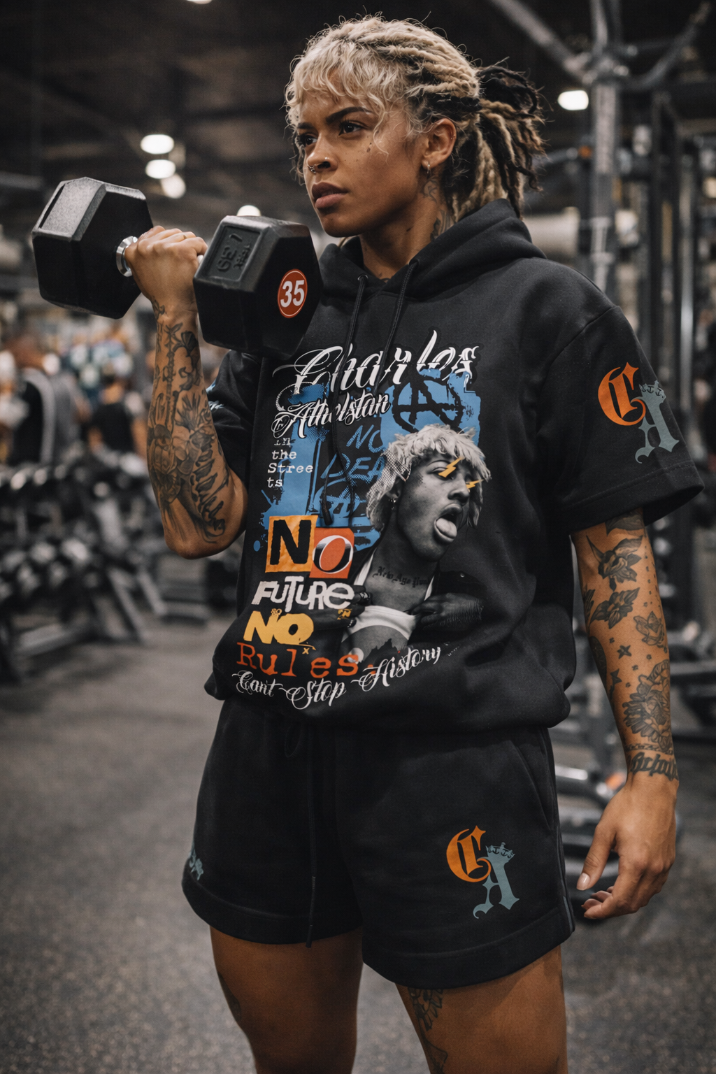 Hooded French terry inner. Enzyme washed. Drop shoulder style. Oversize fit. Two panel lined hood with self colour flat drawcord. Herringbone taped neck.Half moon back yoke.