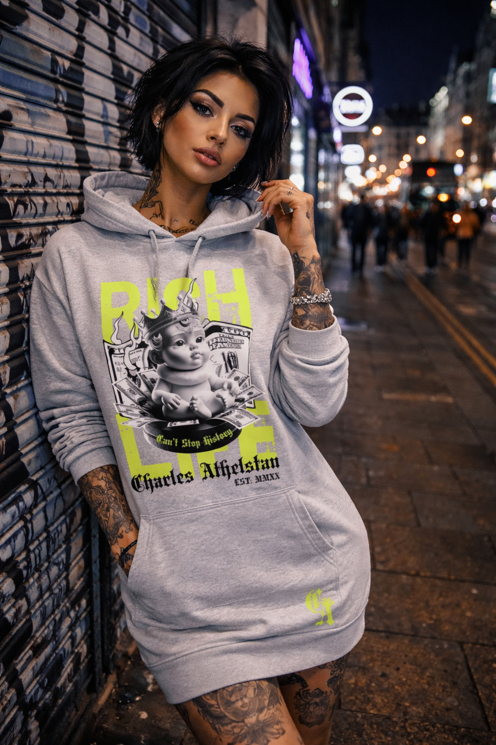 Drop shoulder style. Relaxed ladies fit.